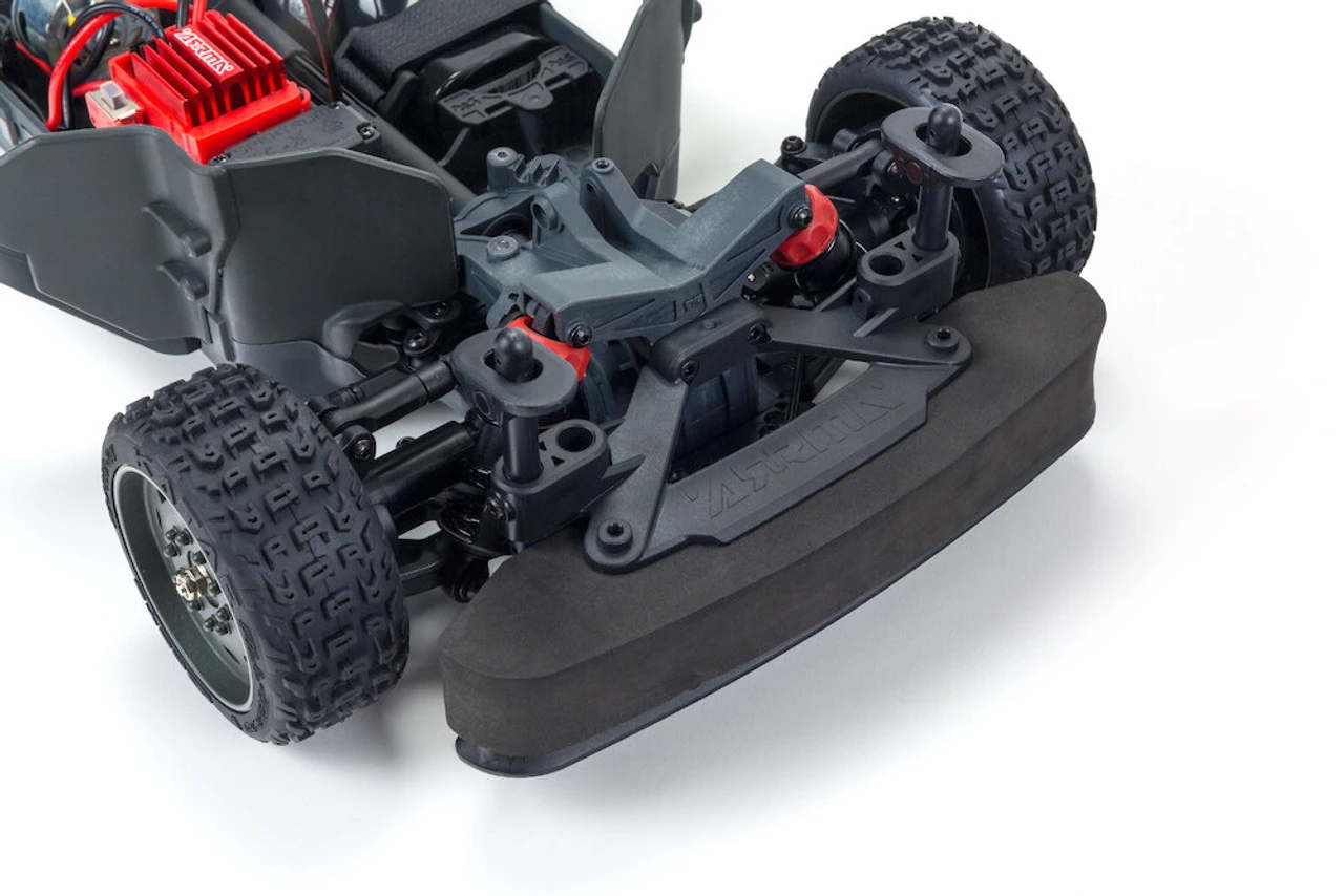 For precise, dependable control, ARRMA® engineers have outfitted this RTR with the 2.4GHz Spektrum™ SLT3™ transmitter and SLR300 receiver. The transmitter is ergonomically designed for long periods of fatigue-free bashing and has a foam wheel for precise fingertip control plus an improved hand grip and trigger feel. New drivers will be able to set throttle limits at 50% or 75% until ready to use the full speed potential. The SLT3™ is compatible with Tactic® SLT™ receivers to run other RTR vehicles you may own, and it includes a third channel to control optional features such as lights and winches on models that have them.