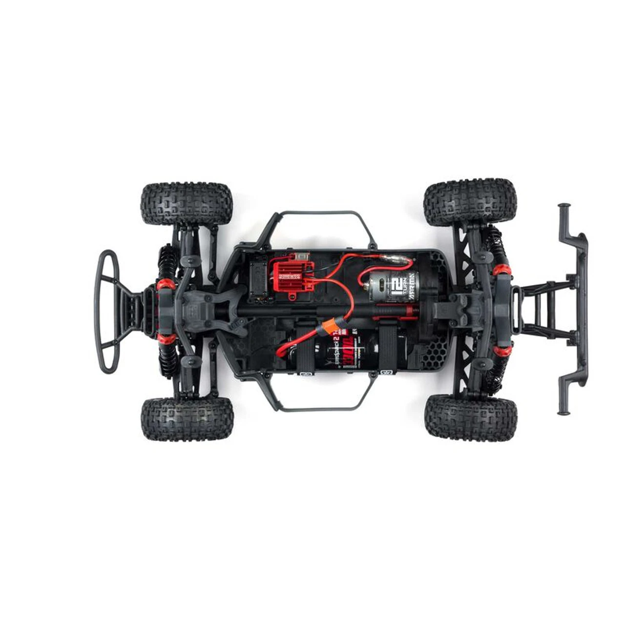 Optimized for bashers, the 1/10 scale ARRMA® SENTON™ 4X4 MEGA 550 Short Course Truck comes newly equipped for even greater strength and power, with a 3-channel Spektrum™ SLT3™ radio, more powerful steering servo and higher capacity NiMH battery.