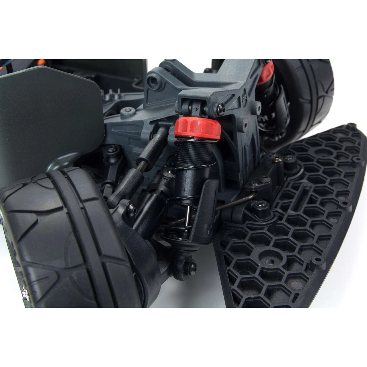 While you’re maximizing the speed potential of the powerful Spektrum™ Firma™ 3660 3900Kv brushless motor, high and low downforce wings on the aerodynamically tuned body help keep your tires glued to the surface. The dBoots® Hoons Elevens vented all-road tires are mounted on tough, gun-metal colored nylon wheels and deliver incredible traction in all surface conditions, while a large rear double diffuser reduces turbulence and drag.