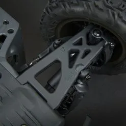 The proven tough ARRMA 4X4 platform lets you bash at high speeds in almost any environment — off-road, on dirt and grass, on parking lots and over paved and asphalt surfaces. Its durability comes from a strong composite chassis featuring extended height dirt defenders, oil-filled shocks with silicone O-rings, metal geared differentials and more. Rugged bumpers and high-traction dBoots Katar tires mounted on tough, gun-metal colored wheels add to its unstoppable performance. The VORTEKS 4X4 3S BLX also includes a sleek, new stadium truck body with tough, injection-molded wing and protective roof skids.Â
