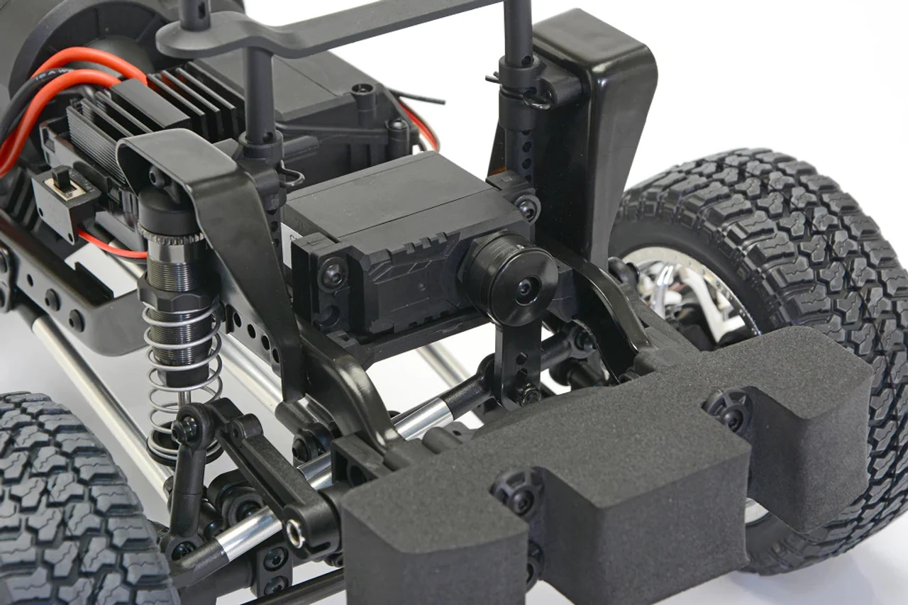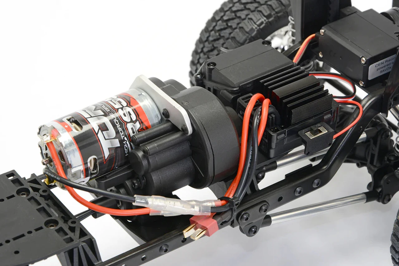 This truck was made dust and water proof to protect the components on any track or trail. Over heat protection and throttle signal loss prevention give you the feedback needed to not over-do a good time or lose control of your truck. A Pistol-Grip AMP 30 3 Channel Transmitter is included in this Ready to Run, featuring digital trimming, and a built in fail-safe to help you dial in the kit. CEN paid attention to detail with the guts of this machine, with hardened steel components and features designed to allow easy customization of the finished product. Get in on the action with this solid True 1/10 scale Ready to Run