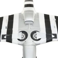 The E-flite® P-51D Mustang 1.2m scale airplane delivers outstanding warbird appeal whether flying or just standing still. The realistic four-blade propeller, outline and cockpit detail highlight the devoted attention given to pull off a popular subject like the Mustang this well. Its functional flaps feature the precision of independent servo operation while electric retractable main landing gear provides reliability and scale-like movement. Construction with EPO foam keeps the overall weight low while maintaining a level of durability that makes flying a scale sensation, like this Mustang, practical enough to enjoy every day. The installed power system offers outstanding performance when used with a 3S LiPo battery. Go beyond ballistic and fly with 4S power—no equipment change required. Whether you’re an intermediate or advanced pilot, the P-51D Mustang 1.2m has the detail, the heart-stopping performance and more importantly the flight quality you need to experience what piloting a legendary thoroughbred is all about.
