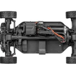 The drivetrain of all the Sport 3 models features the motor mounted longitudinally in the molded chassis, next to the long driveshaft that goes down the center of the car. The entire drivetrain, including the central driveshaft and gear diffs, is completely sealed to prevent dirt, rocks and debris from damaging or binding the drivetrain. The driveshaft, diffs and axles spin on ball bearings to maximize drivetrain efficiency.