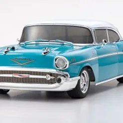 This is the Kyosho EP Fazer Mk2 FZ02L 1957 Chevy Bel Air Coupe ReadySet. Using the iconic 1957 Chevy Bel Air Coupe as an inspiration, Kyosho has expertly recreated this classic car with incredible detail. The scale polycarbonate body incorporates the unmistakable Bel Air grille, lights, window trim and who could forget the large tail fins! The combination of this beautifully reproduced body with the FAZER series chassis can’t be beaten. Kyosho has taken its standard touring car chassis and given it a full model makeover that has evolved performance. A simplified design with fewer parts simplifies maintenance and reduces weight, while core strength and rigidity has been increased through updated materials and ribbing/stiffeners on front and rear. In addition, the symmetrical chassis design offers excellent front-rear suspension balance with responsive control, regardless of power source.