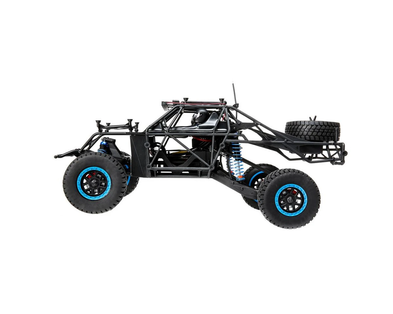 The Losi Baja Rey Ford Raptor 1/10 RTR 4WD Brushless Desert Truck is an officially licensed rig that comes out of the box with a Spektrum 3800Kv brushless power system, a solid rear axle, independent front suspension, and roll cage with upright shocks, giving you the gear you need to tear across the desert. And you’ll do it with the control that AVC technology delivers. Just like the full-scale Ford Raptor, the onboard traction control allows you to drive at speeds in excess of 50mph all while in complete control. You get an authentic off-road racing experience with injection molded details, light bars and two licensed trim schemes. The Ford Raptor Baja Rey has just raised the bar another level.