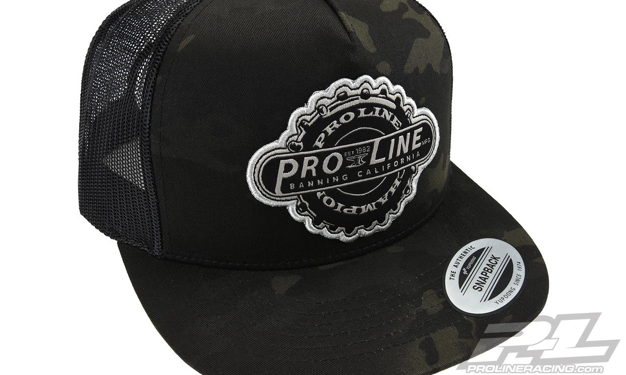 Introducing the new Pro-Line Manufactured Dark Camo Trucker Snapback Hat! This hat references Pro-Line’s manufacturing heritage with a silhouette of the Pro-Line Champion tire that dominated racing in the 1980’s along with the original anvil logo found on Pro-Line’s header card in the early days. A dark camo print is featured on the front of the hat while the back has an open mesh for the trucker styling. The Pro-Line Manufactured Dark Camo Trucker Hat has a snapback to fit most head sizes and has a Flat Bill. Get your new Pro-Line hat now!