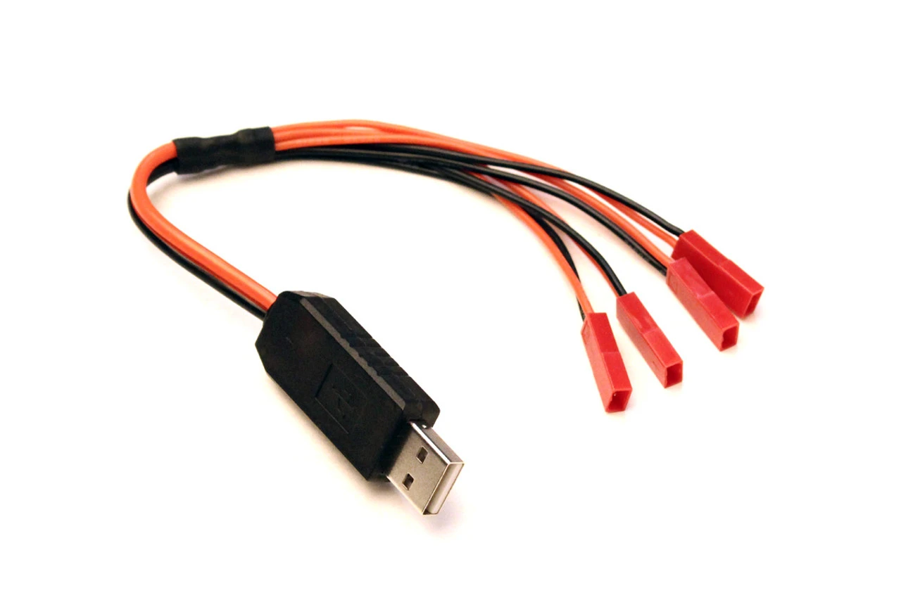 Racer’s Edge new USB charger allows up to four 1S LiPo packs with JST connectors to be charged simultaneously from a mobile charger, device charger, computer or automotive USB outlet. Never wait to fly your micro or nano quad or aircraft again!
