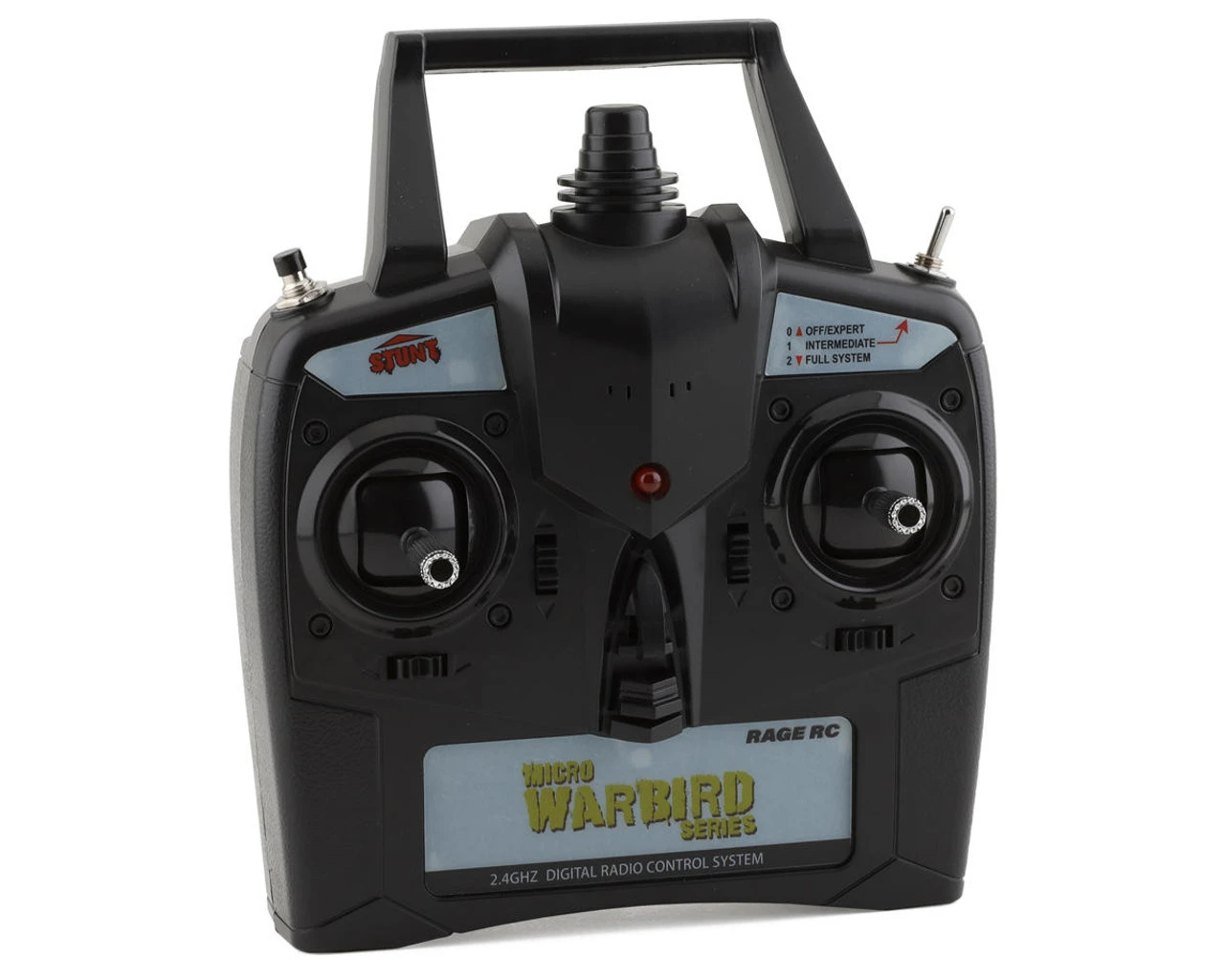 - Transmitter: 4-channel 2.4GHz System w/PASS Switch & Stunt Button