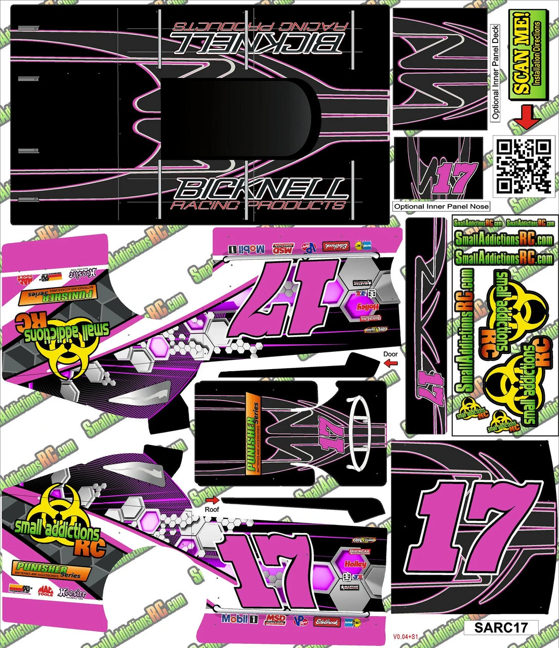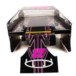 Make your MudBoss stand out from the crowd with this eye pleasing, high quality, custom Body Wrap printed on automotive grade vinyl to fit the 2023 Salvas MudBoss Body. Laminated with 3.5 mm gloss vinyl this wrap is durable yet light weight, pre-cut and slightly oversize to help fit the 2023 Salvas bodies like a glove, and is easy to apply. The number 17 is a bright fluorescent pink.