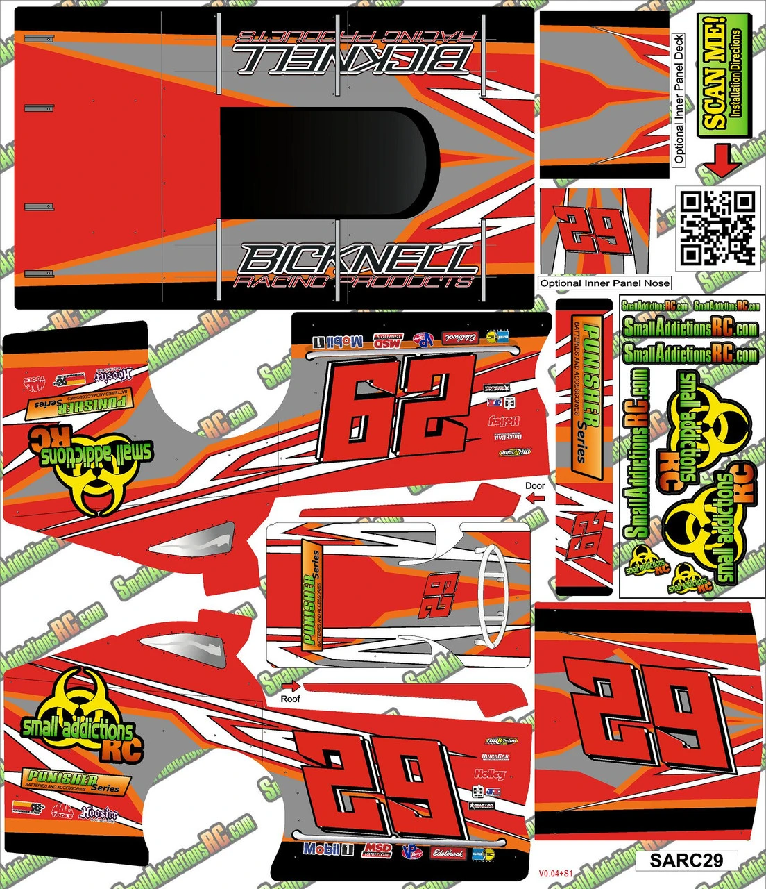 Make your MudBoss stand out from the crowd with this eye pleasing, high quality, custom Body Wrap printed on automotive grade vinyl to fit the 2023 Salvas MudBoss Body. Laminated with 3.5 mm gloss vinyl this wrap is durable yet light weight, pre-cut and slightly oversize to help fit the 2023 Salvas body like a glove, and is easy to apply. The number 29 is a bright fluorescent red.