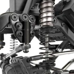 What makes the Enduro Ecto Trail Truck special? The Gatekeeper Suspension package (GKSTM)! The GKSTM package consists of rear trailing arms that move the shocks forward, allowing a larger window for shock tuning and providing improved weight bias. The trailing arms are paired with a rear anti-roll bar for a more stable and consistent suspension when crawling on the rocks. An adjustable aluminum track bar mount firmly bolted to the chassis rail gives the Enduro Ecto more reliable and responsive steering without the flex. Our shock mount inserts with multiple mounting positions allow for precise suspension tuning, whether they’re moving the shocks up, down, forward, or back.