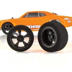 No need to prep or build your racer; just charge it and you’re ready to drive! The included 2.4GHz transmitter allows complete control, enabling you to navigate around, through and over obstacles with ease! The DR10-inspired wheels and body make for a great-looking package that will also perform well on the staggered-size foam tires.