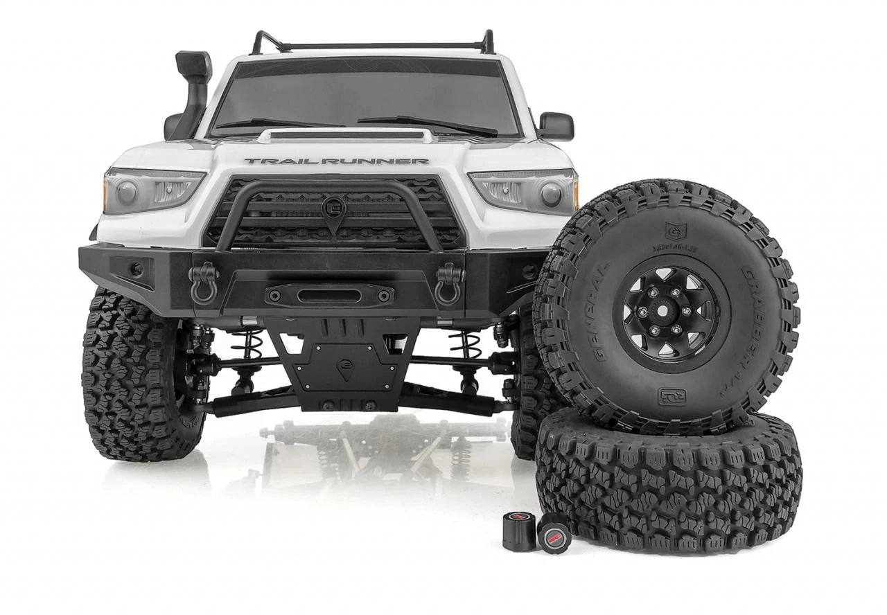 Officially Licensed Tires. Gripping the trail is a set of officially licensed General Grabber(TM) A/T X tires molded in a high-performance, soft compound rubber. The General Grabber(TM) A/T X tires are mounted on three-piece 1.55″ beadlock wheels. No more worrying if your RTR tires will come unglued.