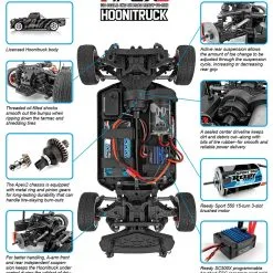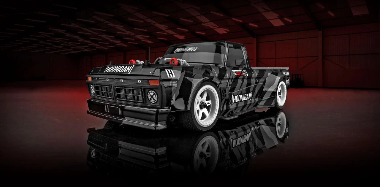 Team Associated is excited to partner with Hoonigan to bring you their world-famous Hoonitruck in radio-control form. Built on an all new Apex2 chassis, the Team Associated Hoonigan Hoonitruck is a tire-slaying beast!