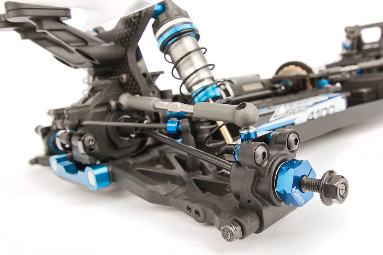 - 7075-T6 aluminum arm mounts use inserts for fine tuning a large range of anti-squat, kick-up, and toe adjustments