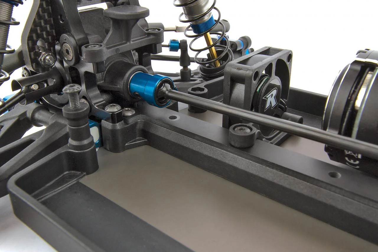 - 7075-T6 aluminum bulkheads with quick-change 0mm-3mm adjustable differential height for low ride-height on carpet while maintaining efficient driveshaft alignment.
