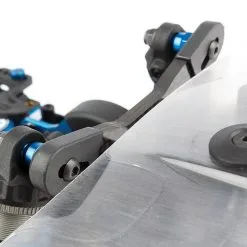 Performance isn’t the only category that has been improved for this generation; durability has also taken a step forward by resolving issues such as bending wing mounts, steering bellcrank screw breakage, and excessive steering linkage play. Additional new features designed with the racer in mind: an integrated transponder mount, +4mm shock rod ends, tie-rod battery brace hardware and linkage are included, 2-wire and 3-wire containing clips, rear shock tower guards, and a redesigned smooth front shock tower guard to cover the exposed screw heads so they won’t pack with dirt.