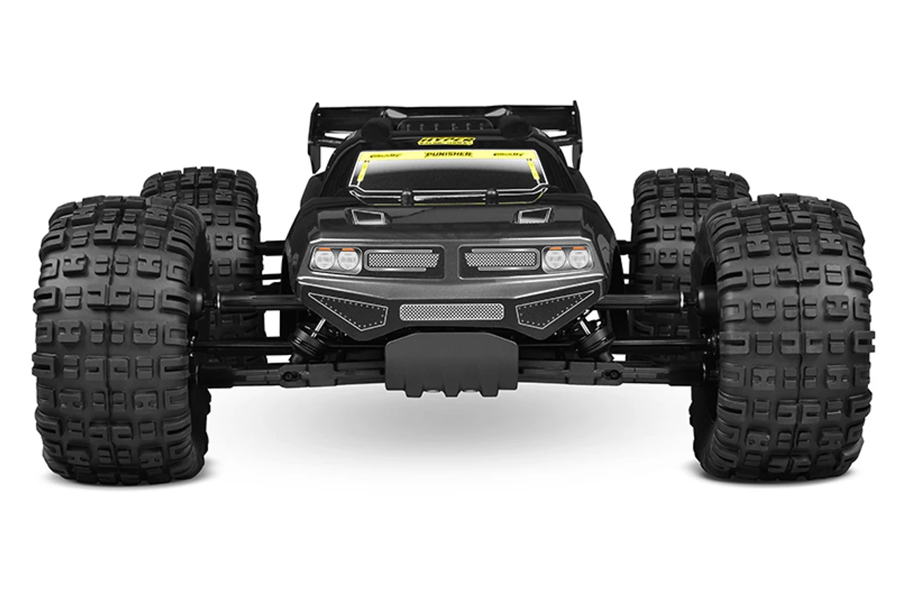 The Punisher is fully controlled by the ergonomically designed pistol-grip style radio transmitter, which features the latest 2.4GHz technology for interference-free control at a distance of 300m. The realistic steering wheel design makes driving intuitive and comfortable. The pistol grip trigger provides perfect control of the throttle, with forward and reverse controls combined in a single control. Learning how to control the Punisher is quick and easy with the S2R controller!