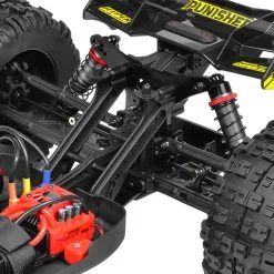 The Punisher includes enhanced front and rear composite skid plates to protect the chassis and critical suspension components, especially during insane big-air jumps. The rear wing mount features additional bracing to maintain proper wing alignment during the most severe jumps and occasional tumbles, while the additional front upper arm brace keeps critical suspension components properly aligned during the harshest bashing use.