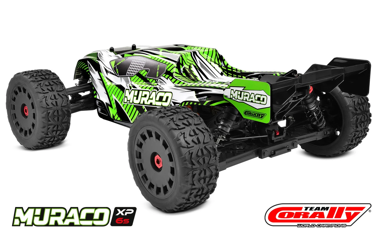 The Muraco XP RTR is an exciting, impressive all-terrain machine! If you’re looking to make an all-out assault on lesser cars with speed and jumping capability that other cars simply cannot duplicate, then look no further than the Muraco XP RTR from Team Corally.