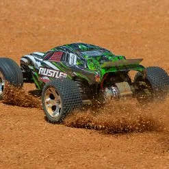 The Rustler comes out of the box Ready-To-Race® with the TQ™ 2.4GHz 2-channel radio system, waterproof XL-5 Electronic Speed Control and Titan 12T motor. Rustler is fun to drive and easy to own, with legendary durability, low-maintenance design, and unmatched parts support from thousands of hobby stores worldwide. With over 30 years in the hobby industry, Traxxas goes the extra mile to ensure that your RC experience is easy and fun. A staff of skilled representatives is on-hand to answer your questions via phone, website, or email. On-road or off-road, at the track or in the backyard, the Rustler is the ultimate stadium truck.