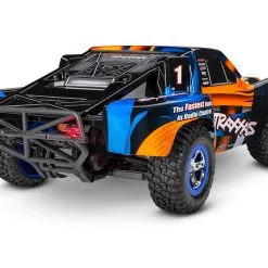 The award-winning Traxxas Slash short-course race truck puts you in the driver’s seat for intense fender-to-fender, high-flying off-road action. Full-scale short-course race trucks embody the spirit of Traxxas RC with their extreme 900+ horsepower racing engines full-throttle, dirt-roosting power slides, giant suspension travel, and big-air jumps. The Traxxas Slash brings all the action home so you can experience the high-speed head-to-head competition at the track or in your own backyard. The rear-wheel drive Slash is purpose built to fly over jumps and rip full-throttle through the turns. Slash hangs it out for an all new way to challenge your driving skills. The 4-wheel independent suspension has been carefully tuned to replicate the real world driving and handling experience as closely as possible. The scale appearing tires provide just the right amount of bite and thick, blinding clouds of dirt roost.