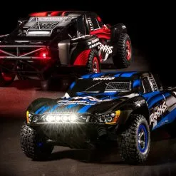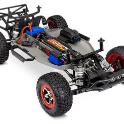 The award-winning Traxxas Slash short-course race truck puts you in the driver’s seat for intense fender-to-fender, high-flying off-road action. Full-scale short-course race trucks embody the spirit of Traxxas RC with their extreme 900+ horsepower racing engines full-throttle, dirt-roosting power slides, giant suspension travel, and big-air jumps. The Traxxas Slash brings all the action home so you can experience the high-speed head-to-head competition at the track or in your own backyard. The rear-wheel drive Slash is purpose built to fly over jumps and rip full-throttle through the turns. Slash hangs it out for an all new way to challenge your driving skills. The 4-wheel independent suspension has been carefully tuned to replicate the real world driving and handling experience as closely as possible. The scale appearing tires provide just the right amount of bite and thick, blinding clouds of dirt roost.