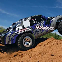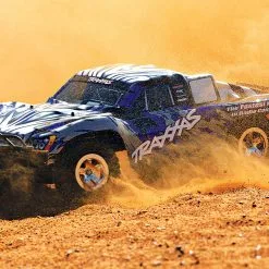 The Traxxas Slash puts you in the driver’s seat for intense fender-to-fender, high-flying off-road action. The full-scale Short Course Race Trucks embody the spirit of Traxxas R/C with their extreme 900+ horsepower racing engines full-throttle, dirt-roosting power slides, giant suspension travel, and Supercross-style big-air jumps. The Traxxas Slash brings all the action home so you can experience the high-speed, head-to-head competition at the track, or in your own backyard. The Slash was inspired by the TORC (THE Traxxas Off-Road Championships) Pro 2WD class. The Traxxas Slash hangs it out for an all new way to challenge your driving skills.