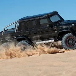 The Mercedes-Benz G 63 AMG 6×6 represents a singular vision to create the boldest and toughest all-terrain vehicle ever. Traxxas captures the spirit and no-compromise approach of the Mercedes-Benz G 63 AMG 6×6 with an officially licensed detailed scale replica built on the proven TRX-4® platform. Six drive wheels, three T-Lock™ remote-locking differentials, portal axles, high/low transmission, 6 aluminum long-travel shocks, and a stunningly accurate body with brilliant LED lighting make this the most advanced and capable RC crawler ever to hit the trail.