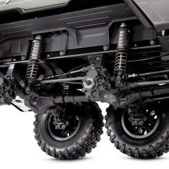 Traxxas scores another RC first with three transmitter-operated locking differentials. Leave the differentials unlocked to take advantage of the TRX-4’s tight turning radius, even with 6-wheel drive and the long wheelbase. Lock the front differential or lock both rear axles in tandem for extreme 6-wheel all-wheel-drive drive traction. Sleeved micro cables control the differential action for scale appearance.